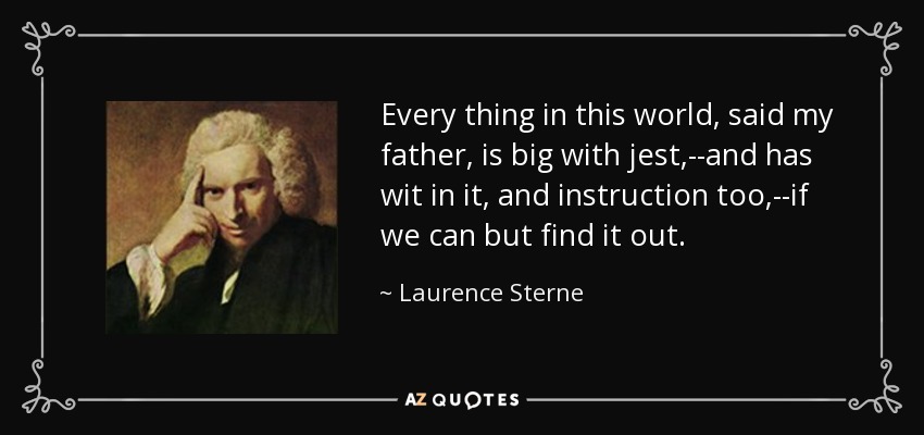 Every thing in this world, said my father, is big with jest,--and has wit in it, and instruction too,--if we can but find it out.