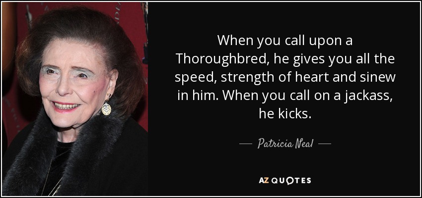 When you call upon a Thoroughbred, he gives you all the speed, strength of heart and sinew in him. When you call on a jackass, he kicks.