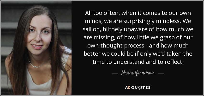 All too often, when it comes to our own minds, we are surprisingly mindless. We sail on, blithely unaware of how much we are missing, of how little we grasp of our own thought process - and how much better we could be if only we'd taken the time to understand and to reflect.