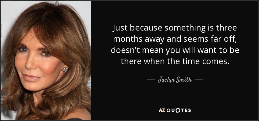 Just because something is three months away and seems far off, doesn't mean you will want to be there when the time comes.