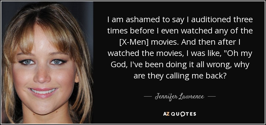 I am ashamed to say I auditioned three times before I even watched any of the [X-Men] movies. And then after I watched the movies, I was like, "Oh my God, I've been doing it all wrong, why are they calling me back?