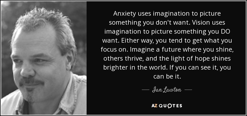 Anxiety uses imagination to picture something you don't want. Vision uses imagination to picture something you DO want. Either way, you tend to get what you focus on. Imagine a future where you shine, others thrive, and the light of hope shines brighter in the world. If you can see it, you can be it.