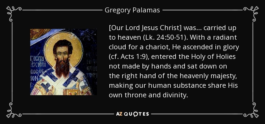 [Our Lord Jesus Christ] was... carried up to heaven (Lk. 24:50-51). With a radiant cloud for a chariot, He ascended in glory (cf. Acts 1:9), entered the Holy of Holies not made by hands and sat down on the right hand of the heavenly majesty, making our human substance share His own throne and divinity.