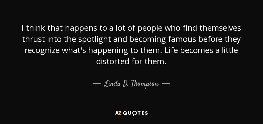 I think that happens to a lot of people who find themselves thrust into the spotlight and becoming famous before they recognize what's happening to them. Life becomes a little distorted for them.