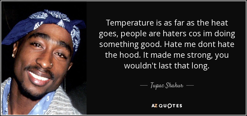 Temperature is as far as the heat goes, people are haters cos im doing something good. Hate me dont hate the hood. It made me strong, you wouldn't last that long.