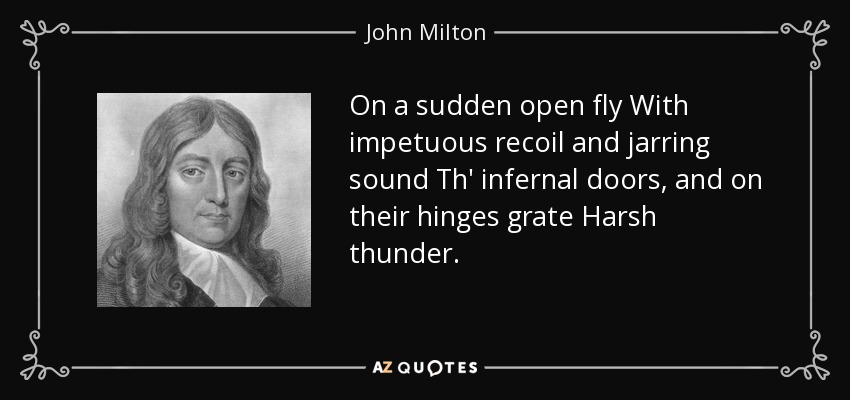 On a sudden open fly With impetuous recoil and jarring sound Th' infernal doors, and on their hinges grate Harsh thunder.