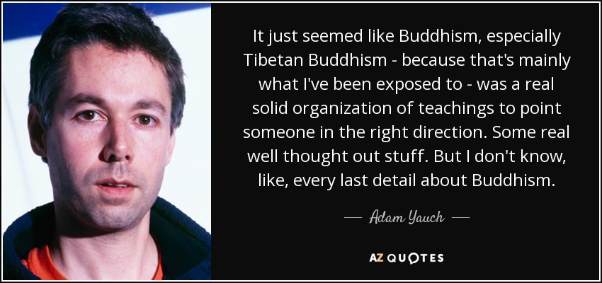 It just seemed like Buddhism, especially Tibetan Buddhism - because that's mainly what I've been exposed to - was a real solid organization of teachings to point someone in the right direction. Some real well thought out stuff. But I don't know, like, every last detail about Buddhism.
