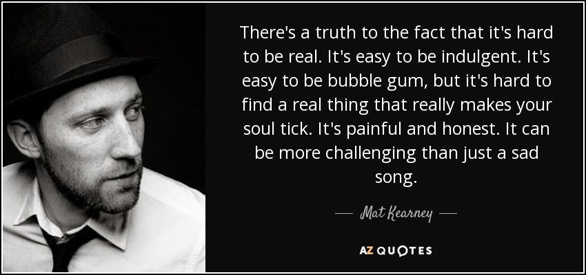 There's a truth to the fact that it's hard to be real. It's easy to be indulgent. It's easy to be bubble gum, but it's hard to find a real thing that really makes your soul tick. It's painful and honest. It can be more challenging than just a sad song.