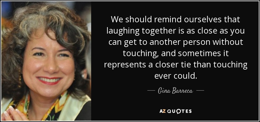 We should remind ourselves that laughing together is as close as you can get to another person without touching, and sometimes it represents a closer tie than touching ever could.