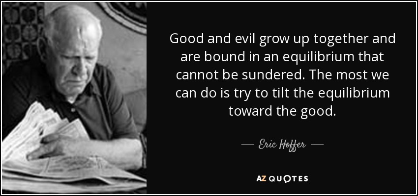 Good and evil grow up together and are bound in an equilibrium that cannot be sundered. The most we can do is try to tilt the equilibrium toward the good.