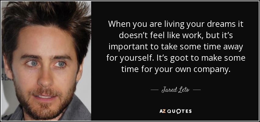 When you are living your dreams it doesn’t feel like work, but it’s important to take some time away for yourself. It’s goot to make some time for your own company.