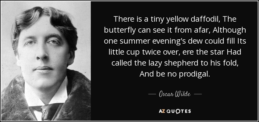 There is a tiny yellow daffodil, The butterfly can see it from afar, Although one summer evening's dew could fill Its little cup twice over, ere the star Had called the lazy shepherd to his fold, And be no prodigal.