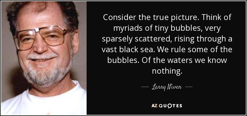 Consider the true picture. Think of myriads of tiny bubbles, very sparsely scattered, rising through a vast black sea. We rule some of the bubbles. Of the waters we know nothing.