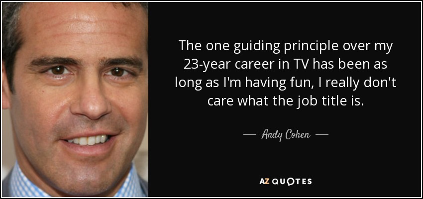 The one guiding principle over my 23-year career in TV has been as long as I'm having fun, I really don't care what the job title is.