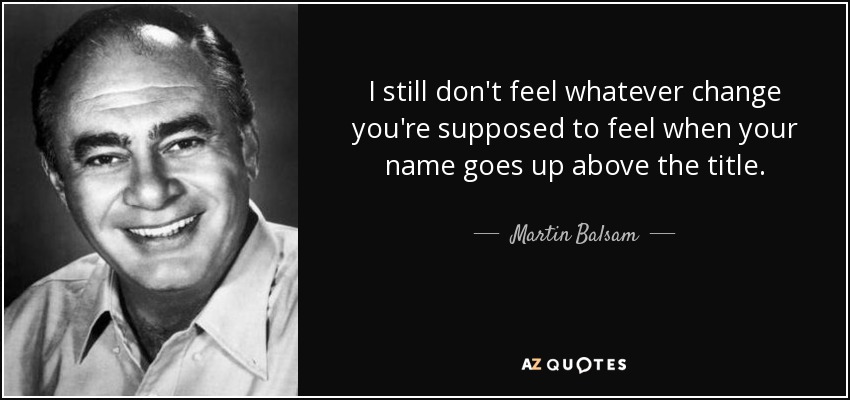 I still don't feel whatever change you're supposed to feel when your name goes up above the title.