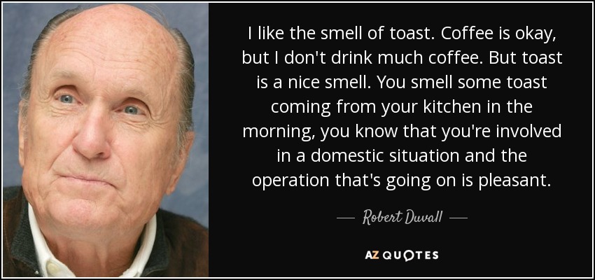 I like the smell of toast. Coffee is okay, but I don't drink much coffee. But toast is a nice smell. You smell some toast coming from your kitchen in the morning, you know that you're involved in a domestic situation and the operation that's going on is pleasant.