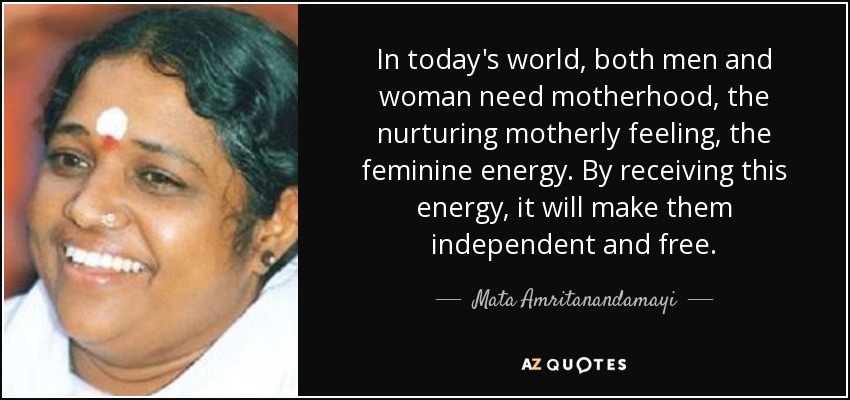 In today's world, both men and woman need motherhood, the nurturing motherly feeling, the feminine energy. By receiving this energy, it will make them independent and free.