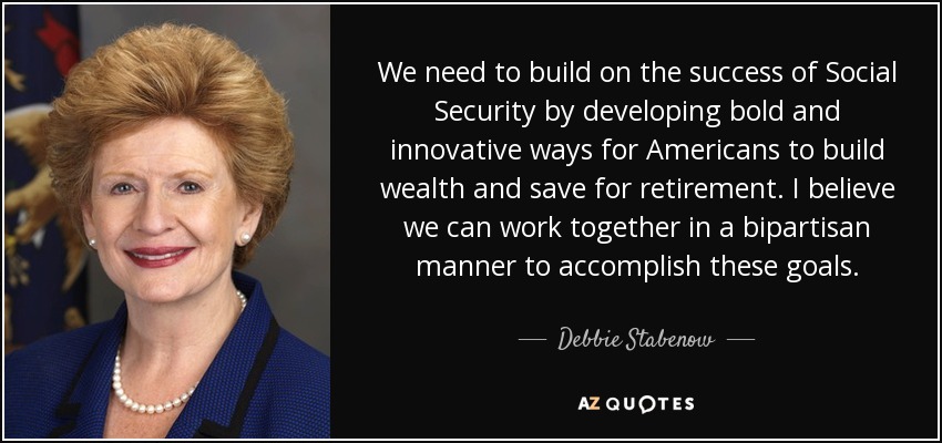 We need to build on the success of Social Security by developing bold and innovative ways for Americans to build wealth and save for retirement. I believe we can work together in a bipartisan manner to accomplish these goals.