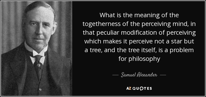 What is the meaning of the togetherness of the perceiving mind, in that peculiar modification of perceiving which makes it perceive not a star but a tree, and the tree itself, is a problem for philosophy
