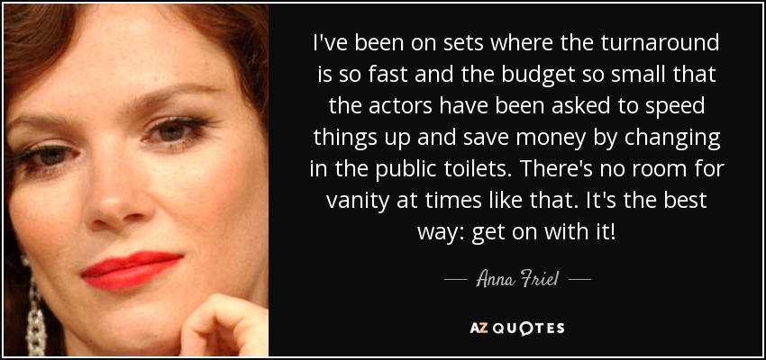 I've been on sets where the turnaround is so fast and the budget so small that the actors have been asked to speed things up and save money by changing in the public toilets. There's no room for vanity at times like that. It's the best way: get on with it!