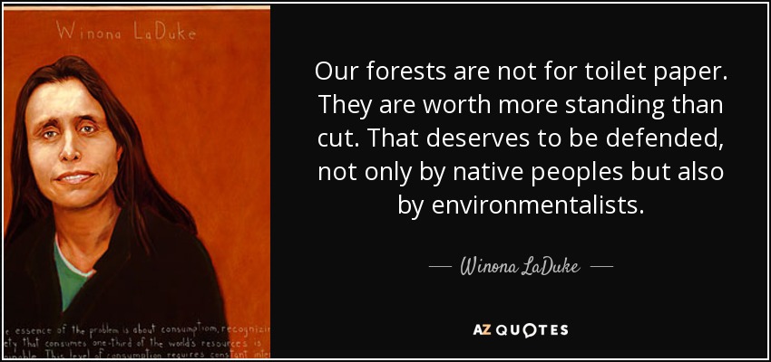 Our forests are not for toilet paper. They are worth more standing than cut. That deserves to be defended, not only by native peoples but also by environmentalists.