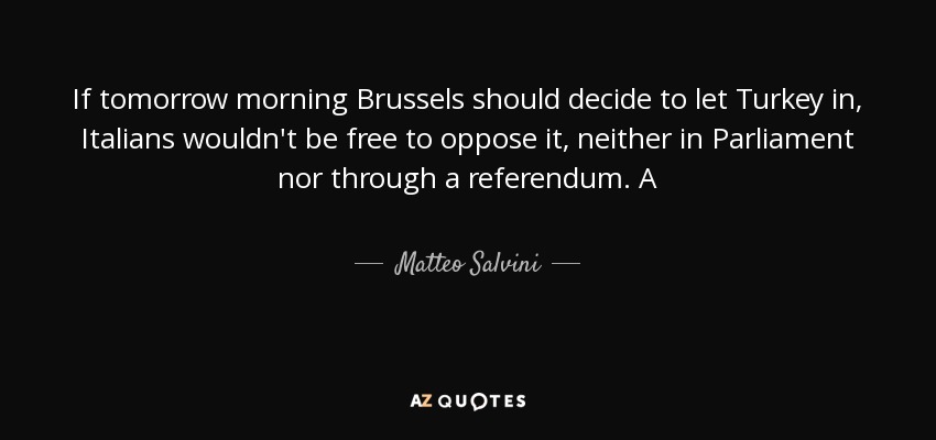 If tomorrow morning Brussels should decide to let Turkey in, Italians wouldn't be free to oppose it, neither in Parliament nor through a referendum. A