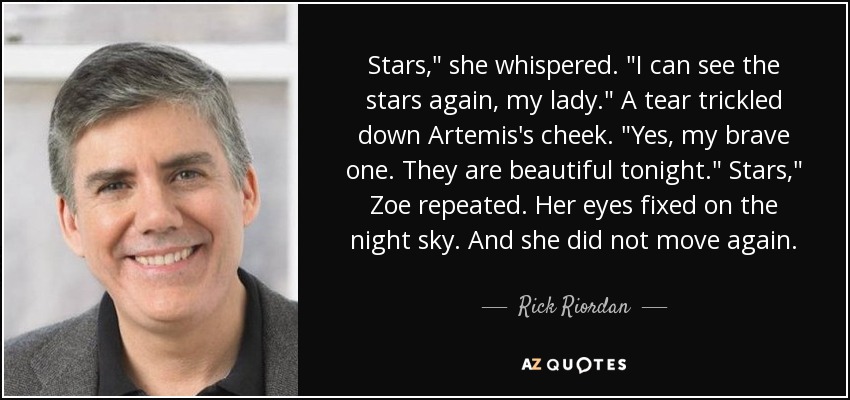 Stars," she whispered. "I can see the stars again, my lady." A tear trickled down Artemis's cheek. "Yes, my brave one. They are beautiful tonight." Stars," Zoe repeated. Her eyes fixed on the night sky. And she did not move again.