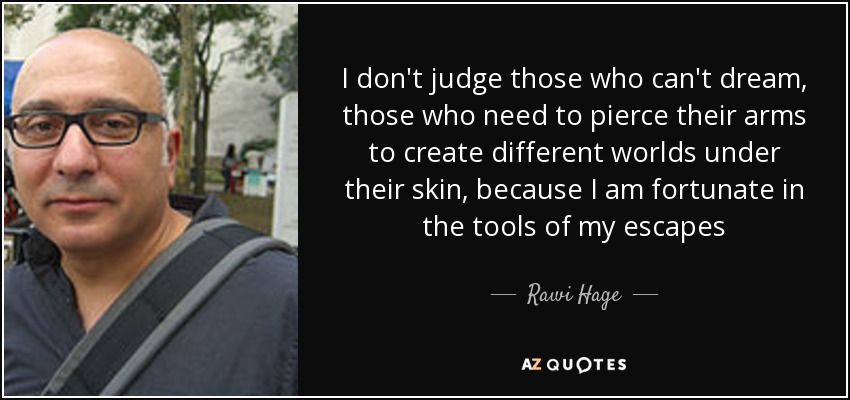 I don't judge those who can't dream, those who need to pierce their arms to create different worlds under their skin, because I am fortunate in the tools of my escapes