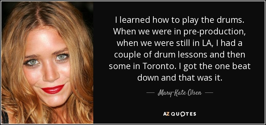 I learned how to play the drums. When we were in pre-production, when we were still in LA, I had a couple of drum lessons and then some in Toronto. I got the one beat down and that was it.