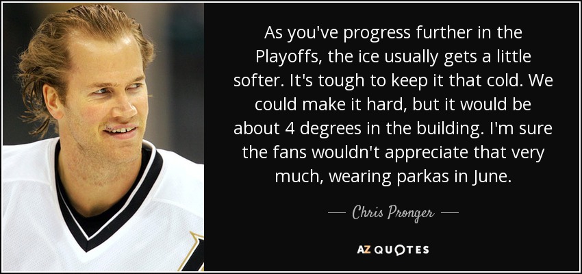 As you've progress further in the Playoffs, the ice usually gets a little softer. It's tough to keep it that cold. We could make it hard, but it would be about 4 degrees in the building. I'm sure the fans wouldn't appreciate that very much, wearing parkas in June.