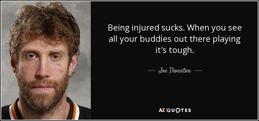 Being injured sucks. When you see all your buddies out there playing it's tough.