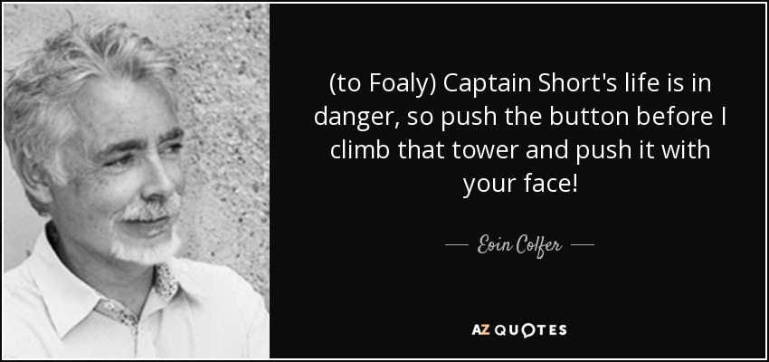 (to Foaly) Captain Short's life is in danger, so push the button before I climb that tower and push it with your face!