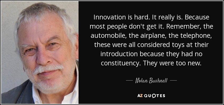 Innovation is hard. It really is. Because most people don't get it. Remember, the automobile, the airplane, the telephone, these were all considered toys at their introduction because they had no constituency. They were too new.