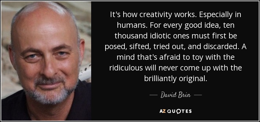 It's how creativity works. Especially in humans. For every good idea, ten thousand idiotic ones must first be posed, sifted, tried out, and discarded. A mind that's afraid to toy with the ridiculous will never come up with the brilliantly original.