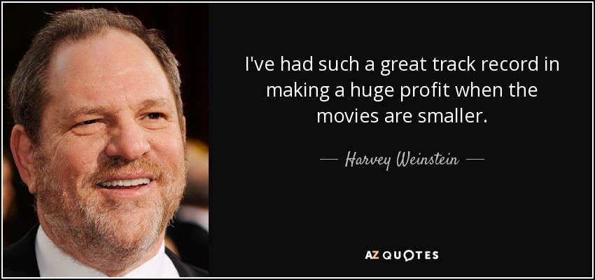 I've had such a great track record in making a huge profit when the movies are smaller.