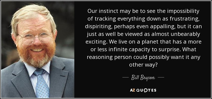 Our instinct may be to see the impossibility of tracking everything down as frustrating, dispiriting, perhaps even appalling, but it can just as well be viewed as almost unbearably exciting. We live on a planet that has a more or less infinite capacity to surprise. What reasoning person could possibly want it any other way?