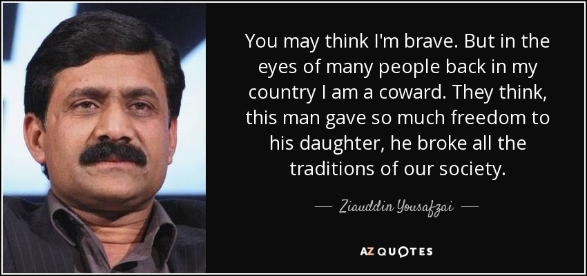 You may think I'm brave. But in the eyes of many people back in my country I am a coward. They think, this man gave so much freedom to his daughter, he broke all the traditions of our society.
