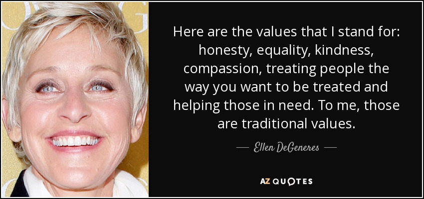 Here are the values that I stand for: honesty, equality, kindness, compassion, treating people the way you want to be treated and helping those in need. To me, those are traditional values.
