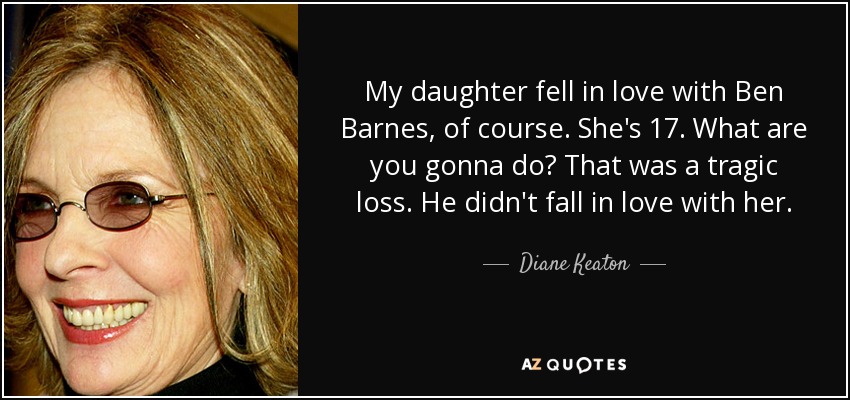 My daughter fell in love with Ben Barnes, of course. She's 17. What are you gonna do? That was a tragic loss. He didn't fall in love with her.