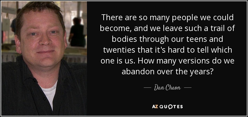 There are so many people we could become, and we leave such a trail of bodies through our teens and twenties that it's hard to tell which one is us. How many versions do we abandon over the years?