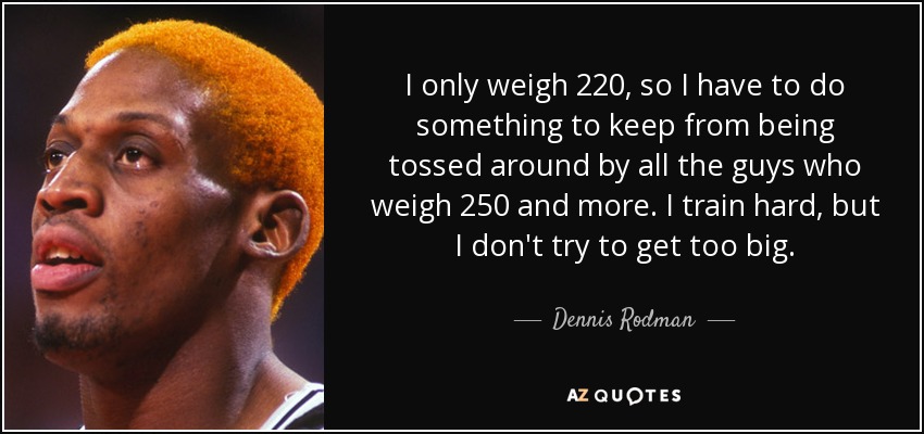 I only weigh 220, so I have to do something to keep from being tossed around by all the guys who weigh 250 and more. I train hard, but I don't try to get too big.