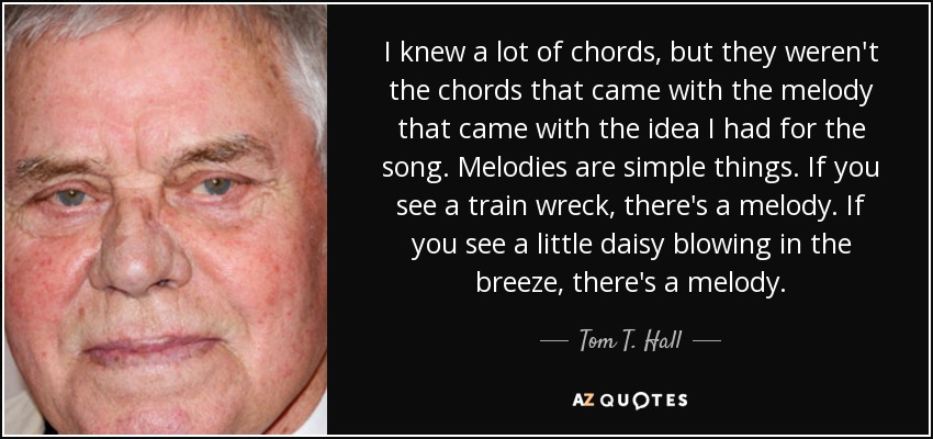 I knew a lot of chords, but they weren't the chords that came with the melody that came with the idea I had for the song. Melodies are simple things. If you see a train wreck, there's a melody. If you see a little daisy blowing in the breeze, there's a melody.