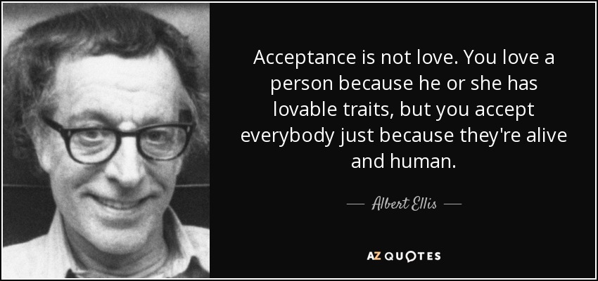 Acceptance is not love. You love a person because he or she has lovable traits, but you accept everybody just because they're alive and human.