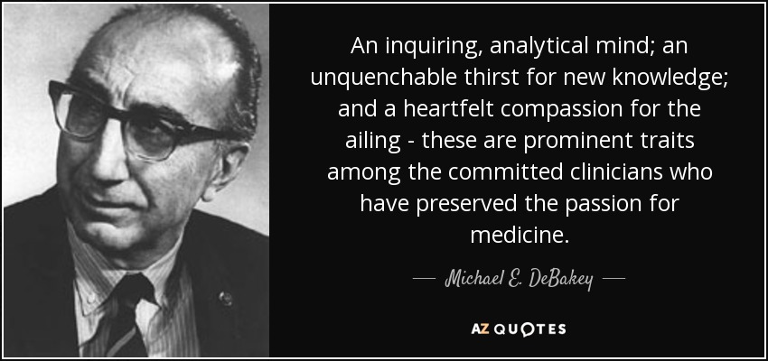 An inquiring, analytical mind; an unquenchable thirst for new knowledge; and a heartfelt compassion for the ailing - these are prominent traits among the committed clinicians who have preserved the passion for medicine.