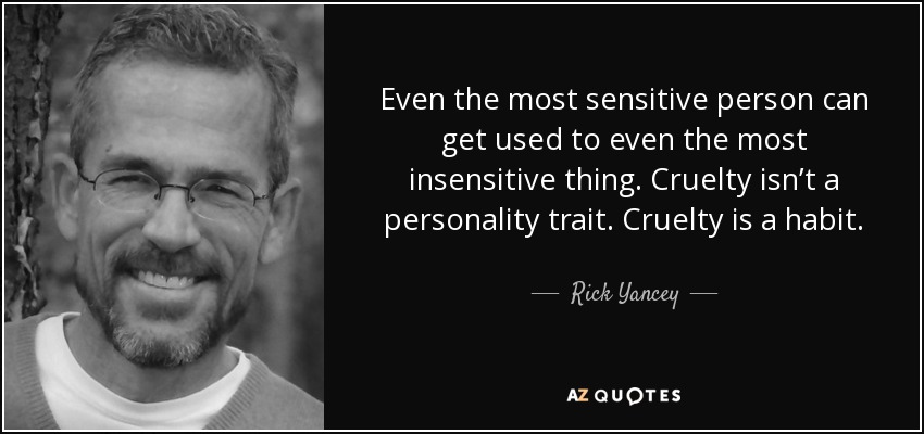 Even the most sensitive person can get used to even the most insensitive thing. Cruelty isn’t a personality trait. Cruelty is a habit.