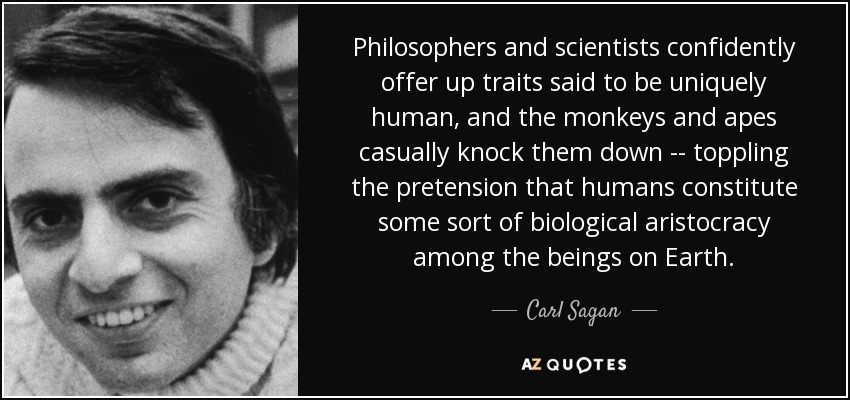 Philosophers and scientists confidently offer up traits said to be uniquely human, and the monkeys and apes casually knock them down -- toppling the pretension that humans constitute some sort of biological aristocracy among the beings on Earth.