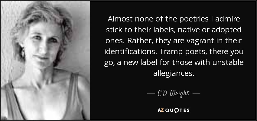 Almost none of the poetries I admire stick to their labels, native or adopted ones. Rather, they are vagrant in their identifications. Tramp poets, there you go, a new label for those with unstable allegiances.
