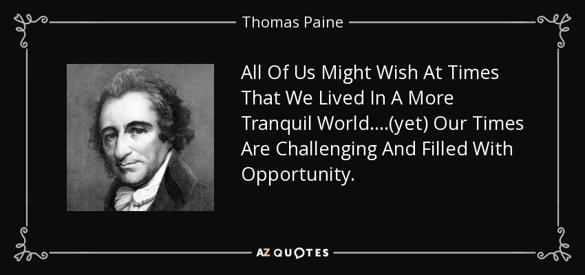 All Of Us Might Wish At Times That We Lived In A More Tranquil World....(yet) Our Times Are Challenging And Filled With Opportunity.
