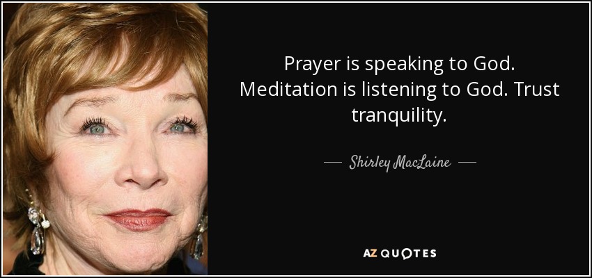 Prayer is speaking to God. Meditation is listening to God. Trust tranquility.