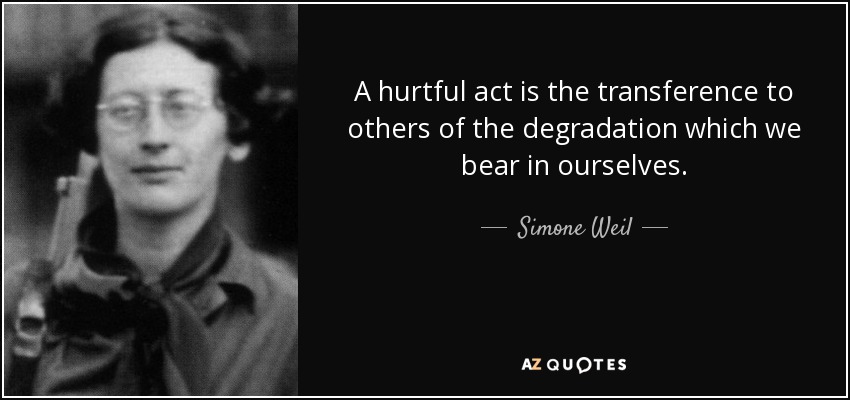 A hurtful act is the transference to others of the degradation which we bear in ourselves.